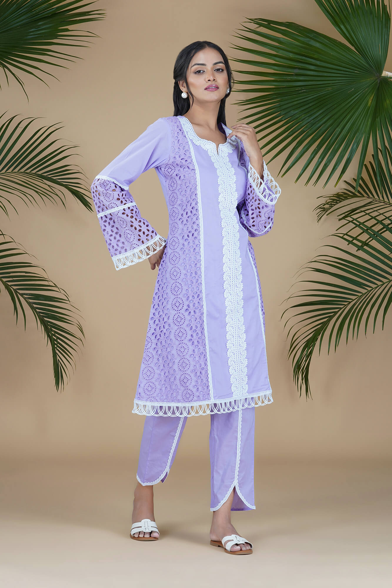 Lilac ISABELLA Chikan Panelled A-line Suit Set