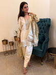Gold Embroidered Tissue Kurta with Farshi Salwar